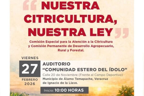 Xalapa, Ver., 24 de febrero de 2026.- Con el objetivo de construir un marco jurídico que responda a los retos actuales del campo veracruzano, la Comisión Especial para la Atención a la Citricultura anunció la realización de dos foros de consulta previa, abierta e informada para la creación de la Ley Citrícola de Veracruz, la…