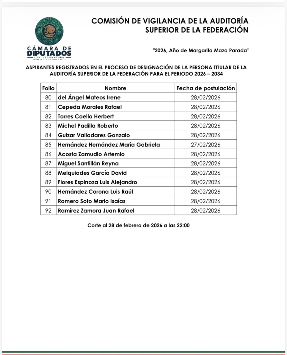 La Cámara de Diputados registró a 92 aspirantes para ocupar la titularidad de la Auditoría Superior de la Federación (ASF), órgano técnico encargado de la fiscalización del gasto público federal.