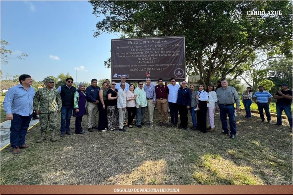 Con motivo del 110 aniversario del Pozo Cerro Azul No. 4, uno de los mayores pozos productores del mundo, el H. Ayuntamiento de Cerro Azul, a través de COPLADEMUN y el Cuerpo Edilicio, llevó a cabo un acto solemne encabezado por el Presidente Municipal Fernando Hernández Spinoso, acompañado por el Secretario del Ayuntamiento José Reyes Cáceres y la Síndica Laura Vivían Mendo Vargas, así como las y los regidores Pamela García Trujillo, Itzel Aimé Cuervo Gómez, Silverio de la Cruz, Maricruz Monroy Ornelas y Cristian Feliciano Hernández.