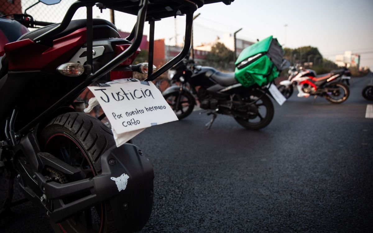 Este lunes, diversos motociclistas de la Ciudad de México, en su mayoría repartidores de aplicación, se manifestaron en la Avenida Tlalpan a la altura de metro viaducto por el asesinato de Roberto Hernández.