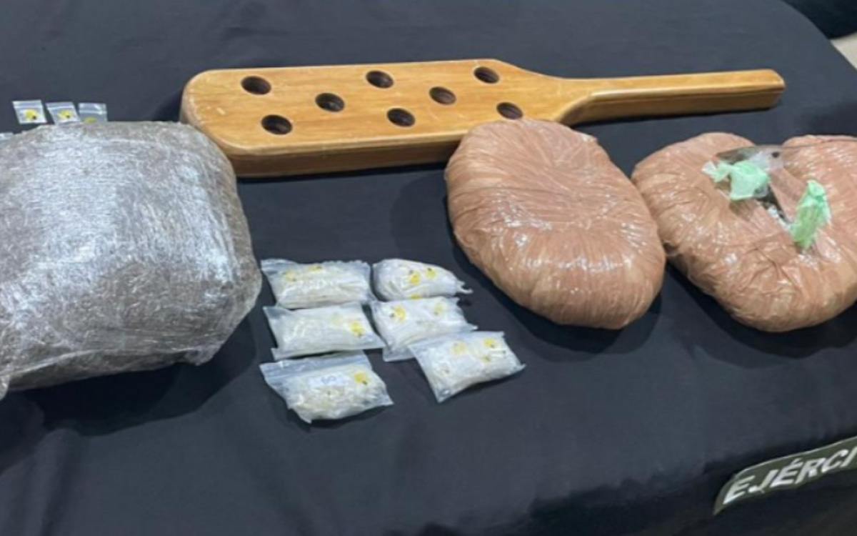 Las autoridades informaron que durante la acción fueron asegurados envoltorios de droga, hierba verde, tablas de tortura y tres vehículos (dos con placas del Estado de México y uno de Morelos, dos de ellos blindados).