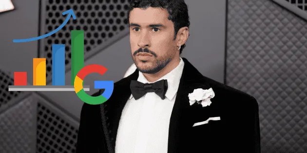 Google Trends informa que el término “Bad Bunny Ice” experimentó un aumento repentino en las búsquedas en Estados Unidos (+1400%), mientras que la consulta “Bad Bunny Grammy” también registró un aumento.