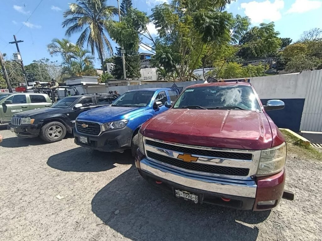 Tuxpan, Ver.- Un despliegue coordinado entre corporaciones de seguridad permitió localizar y asegurar tres camionetas con reporte de robo, sustraídas en la autopista México–Tuxpan, específicamente en el tramo Poza Rica–Tihuatlán.