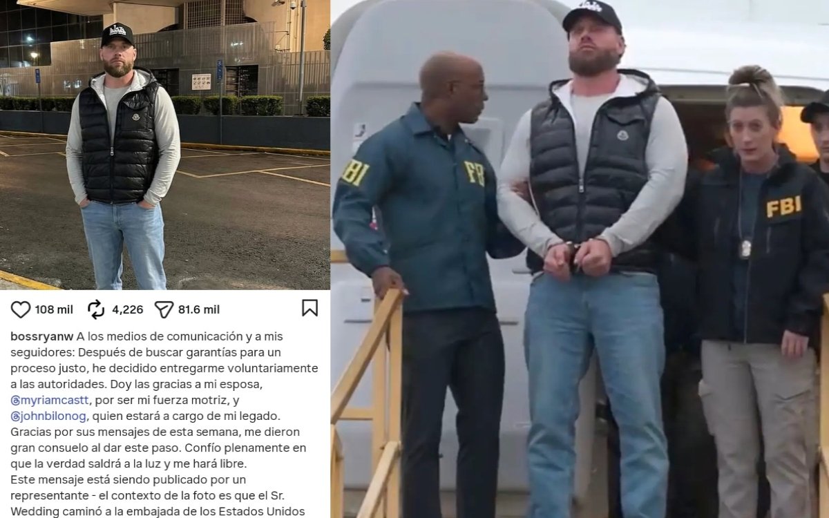“Este mensaje está siendo publicado por un representante – el contexto de la foto es que el Sr. Wedding caminó a la embajada de los Estados Unidos en la Ciudad de México con sus propios pies”, concluye el texto que acompaña a la foto de Wedding en una cuenta recién creada (bossryanw).