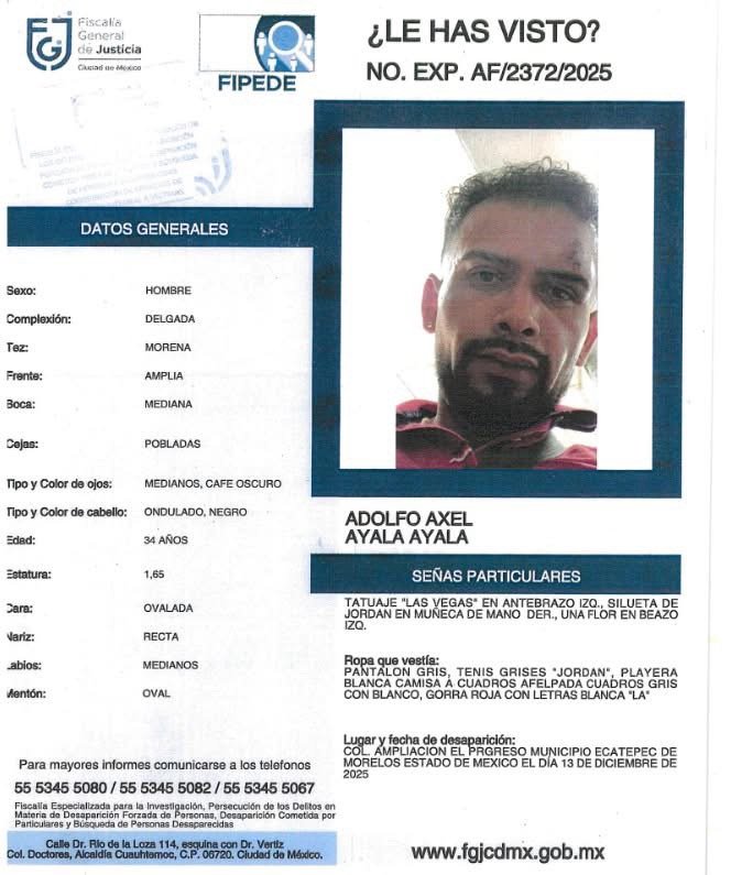 Solicitamos su colaboración para localizar al C. Dionicio Ramírez Torres, cualquier información contactar al número y/o correo que aparecen al margen de este boletín.