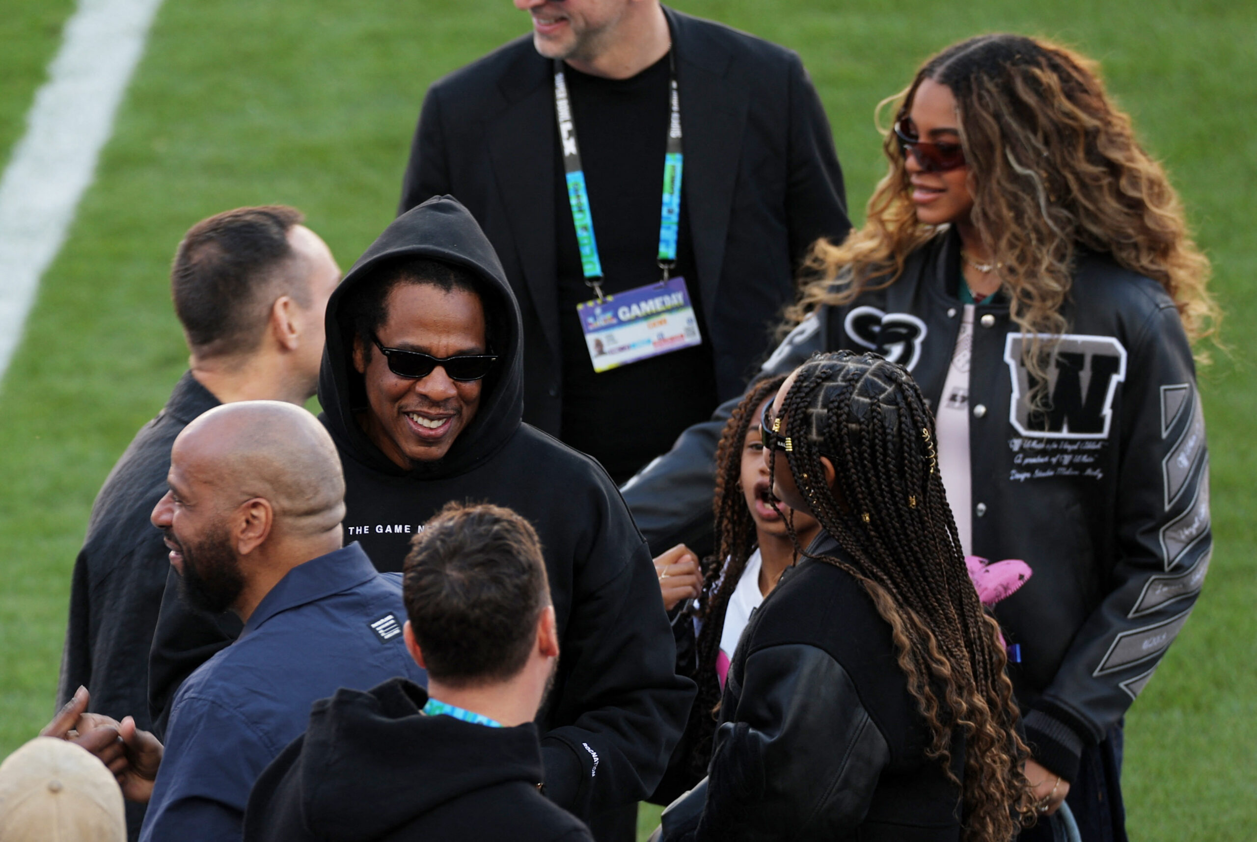 Entre el público también se encuentra el canadiense Justin Bieber junto a su mujer, la modelo Hailey Bieber, así como el rapero Jay-Z junto a sus hijas Rumi y Blue Ivy, o el cómico Adam Sandler.
