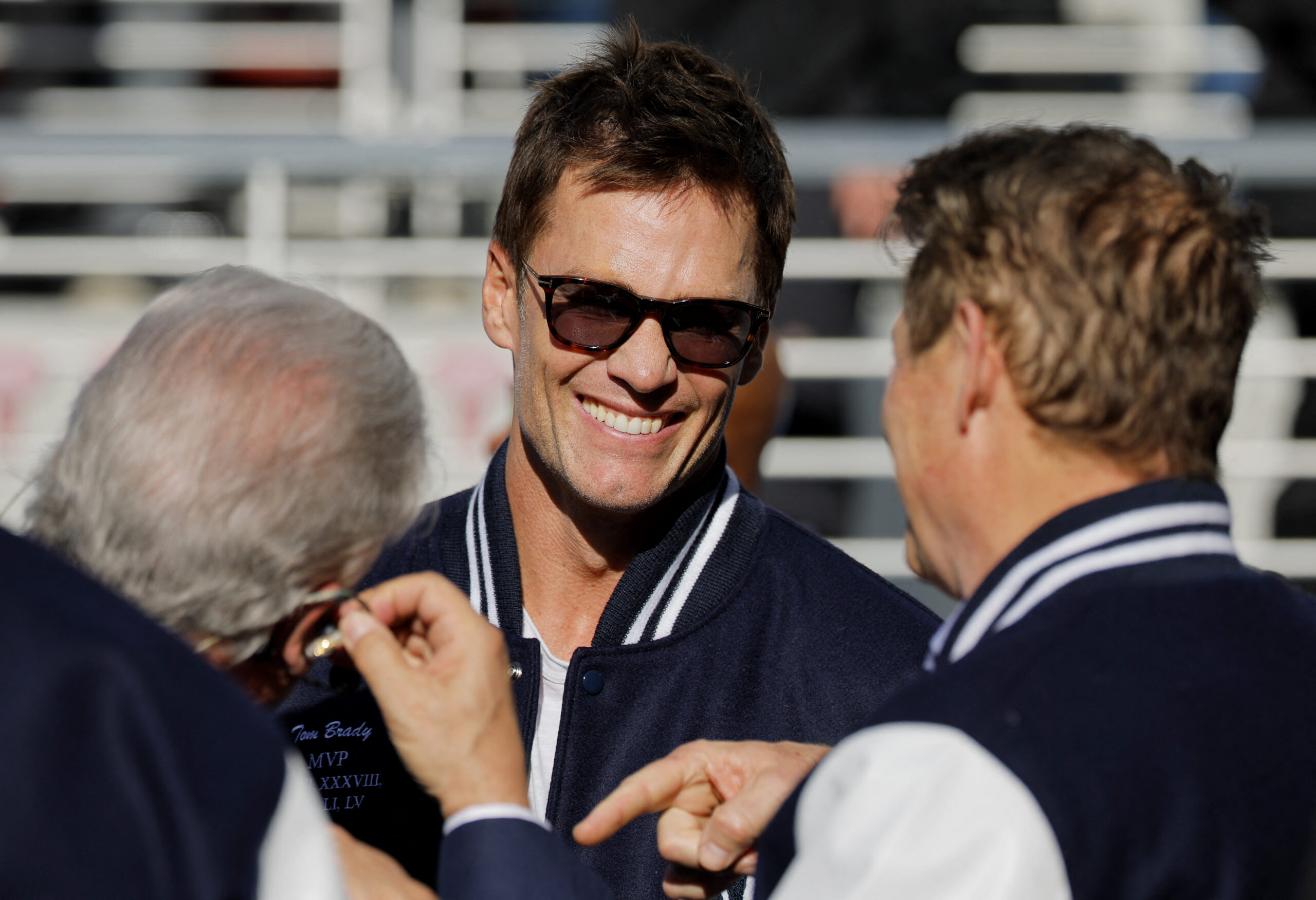 También pudo verse al exquarterback de los Patriots Tom Brady y al jugador Travis Kelce caminando por el césped poco antes del inicio del partido, captando todas las miradas pese a la notable ausencia de Taylor Swift.